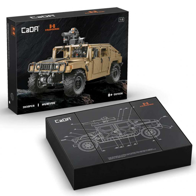 Конструкторы – одни из самых полезных детских игр. Они развивают логическое и пространственное мышление, мелкую моторику, навыки инженерии и проектирования, интерес к наукам и фантазию. CaDa - линейка конструкторов автомобилей и специальной техники, которые отличаются прекрасной собираемостью, прочностью и технологичностью готовой модели. Данный конструктор является аналогом Лего и не уступает по качеству.Конструктор модели внедорожника CaDA C61036W основаны на оригинальном авторизованном прототипе внедорожника HUMVEE с точным соотношением сторон 1:8. Передняя и задняя независимая подвеска, полный привод, 8-цилиндровый двигатель.