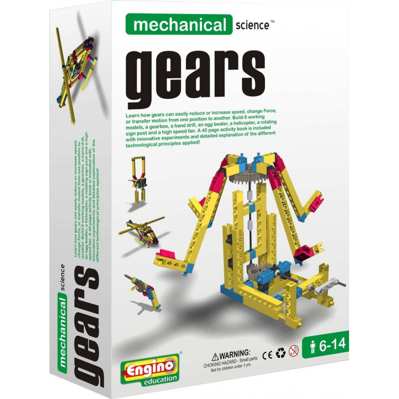 Engino Mechanical Science. Шестеренки - познавательно-образовательный конструктор для изучения разделов физики. Позволяет в игровой форме как можно понижать и повышать скорость, изменять силу и передавать движение из одной точки в другую с помощью шестеренок.