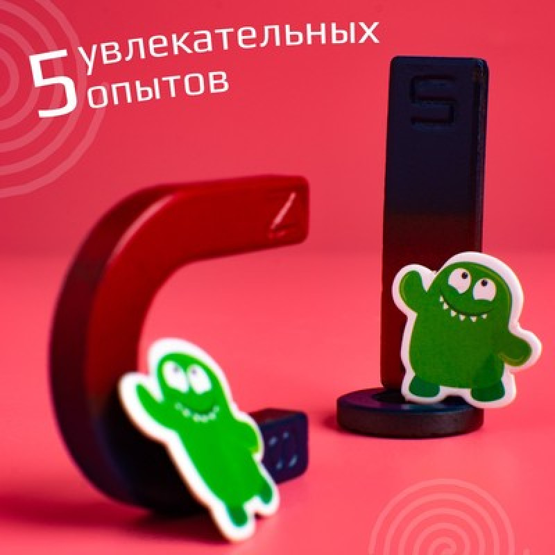 В набор входитСледуя подробной инструкции, ребёнок сможет сам провести 5 увлекательных опытов с магнитами.